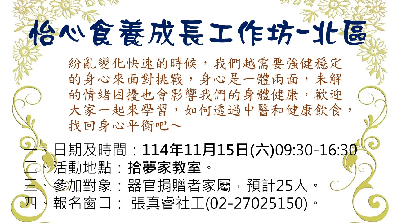 北區怡心食養成長工作坊